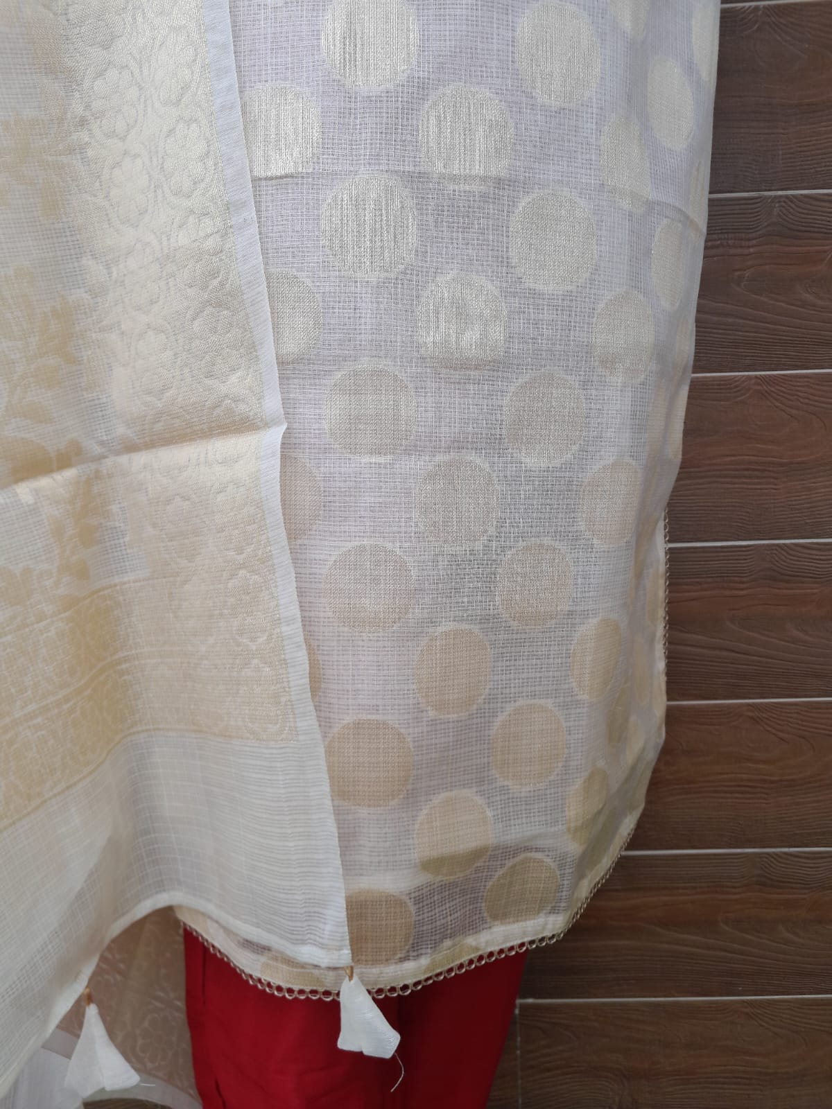 - Dupatta - Pearl white kota zari color weaving border n all over buta n tassels 2.5 Mtr