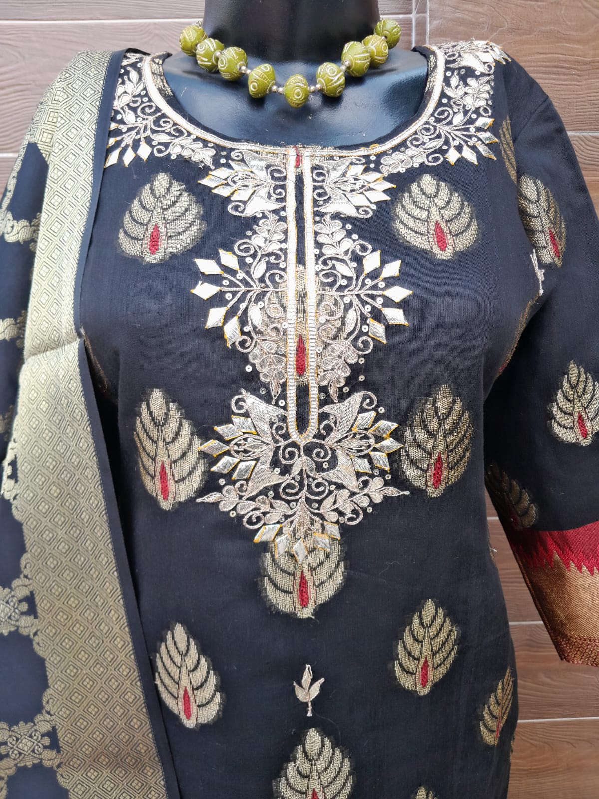 Black Color Banarsi Silk Suit With Gotta Patti Work