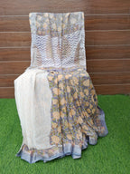 - Saree fabric soft handloom linen block print saree with silver zari border